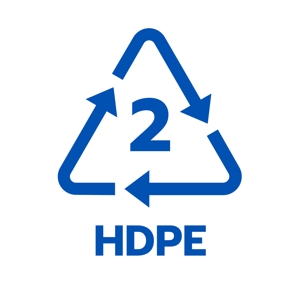 2.HDPE โพลีเอทีลีนชนิดความหนาแน่นสูง มีน้ำหนักเบา แข็ง ทนต่อการทำละลาย และ ความร้อนใช้ผลิตภาชนะอุปโภค บริโภค อาทิ ขวดนม เหยือกน้ำ ขวดแชมพู ขาโต๊ะ-เก้าอี้ และถังน้ำมัน HDPE สามารถรีไซเคิลได้ง่าย โดยการขึ้นรูปเป็นโต๊ะ ม้านั่ง รั้วไม้เทียม