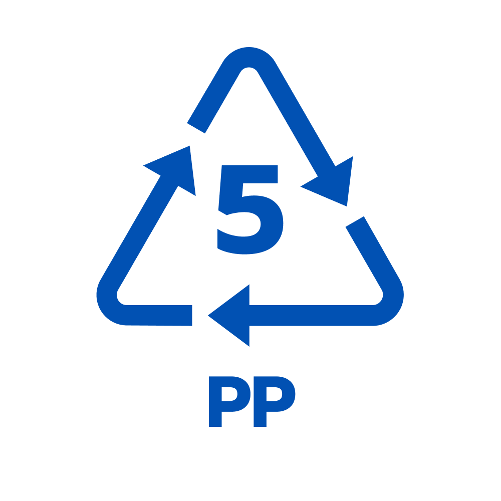 5.PP โพลีโพรพิลีน มีความเหนียว น้ำหนักเบา ทนต่อความชื้น และ สารเคมี มักใช้ผลิตภาชนะบรรจุอาหาร หลอดดูด กระบอกน้ำ ขวดยา และ ถังใส่สี PP ใช้รีไซเคิลเป็นชิ้นส่วนรถยนต์ ถุงร้อนใส ใส่อาหาร แก้วพลาสติก หรืออุ่นอาหารไมโครเวฟ