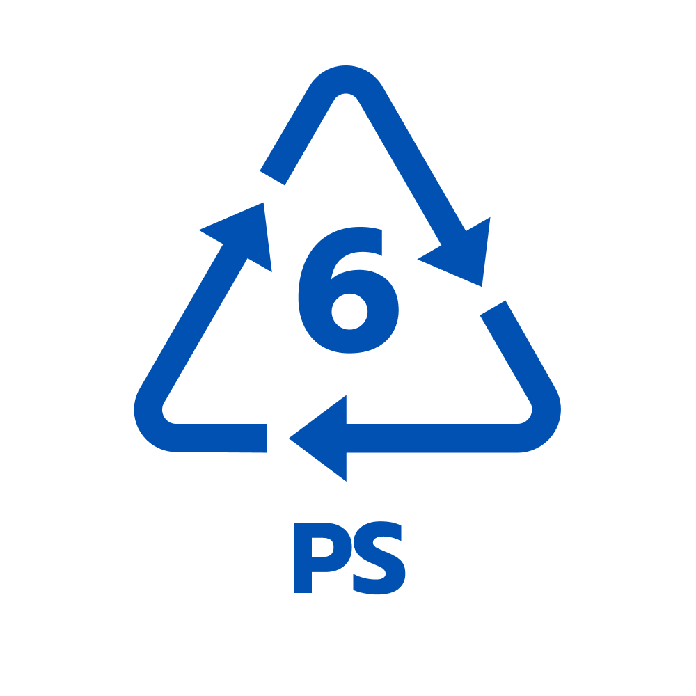 6.PS โพลิสไดรีน มีความโปร่งใส ทนต่อกรด - ด่าง ไอน้ำซึมผ่านได้ น้ำหนักเบา เปราะแตกง่าย ใช้ทำกล่องโฟมใส่อาหาร ช้อนส้อม และ แก้วน้ำ PS มีราคาถูก แต่ก็ใช้รีไซเคิลเป็นฉนวนกันความร้อน จาน แผงไข่ไก่ และ กล่องซีดี